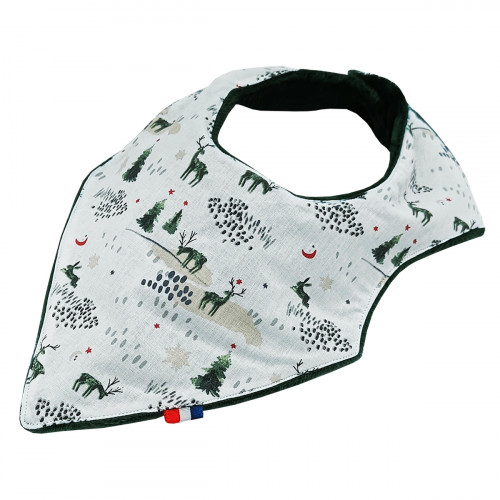 Ce bavoir est composé de deux types de tissus : une face visible en coton et une face cachée ultra douce blanche pour ne pas irriter bébé autour de son petit cou. Ce bavoir a été conçu pour bien épouser la forme des épaules de bébé.