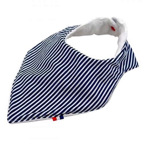 Ce bavoir personnalisable est composé de deux types de tissus : une face visible en coton et une face cachée ultra douce pour ne pas irriter bébé autour de son petit cou. Ce bavoir a été conçu pour bien épouser la forme des épaules de bébé.