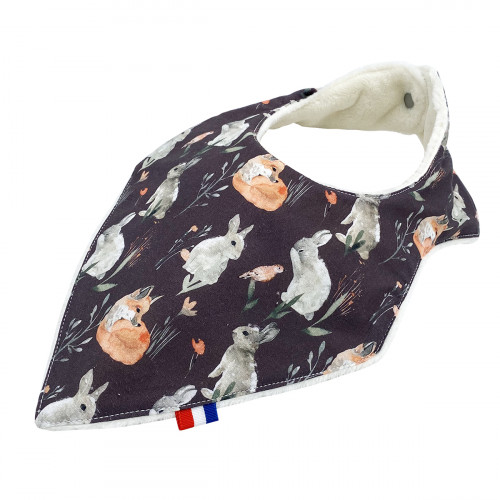 Ce bavoir est composé de deux types de tissus : une face visible en coton et une face cachée ultra douce gris pour ne pas irriter bébé autour de son petit cou. Ce bavoir a été conçu pour bien épouser la forme des épaules de bébé.