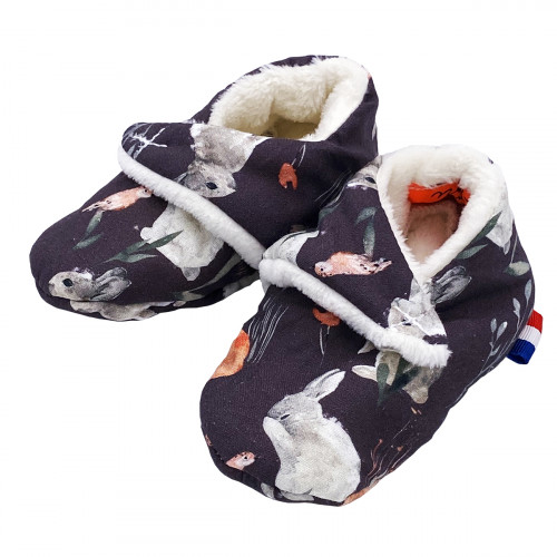 Ces chaussons bas de naissance sont composés de deux types de tissus : un intérieur ultra doux et moelleux qui réchauffera les petits petons de bébé et un coté coton imprimé.