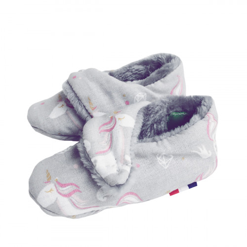 Ces chaussons "Philomène" sont réalisés avec une douillette de couleur blanc.