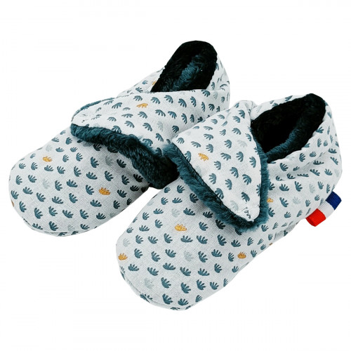Ces chaussons bas de naissance sont composés de deux types de tissus : un intérieur ultra doux et moelleux qui réchauffera les petits petons de bébé et un coté coton imprimé.