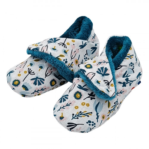 Ces chaussons bas de naissance sont composés de deux types de tissus : un intérieur ultra doux et moelleux qui réchauffera les petits petons de bébé et un coté coton imprimé.