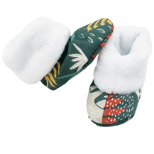 Ces chaussons hauts de naissance sont composés de deux types de tissus : un intérieur ultra doux et moelleux qui réchauffera les petits petons de bébé et un coté coton imprimé.