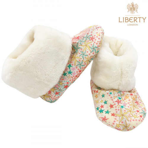 Ces chaussons hauts de naissance sont composés de deux types de tissus : un intérieur ultra doux et moelleux qui réchauffera les petits petons de bébé et un coté coton imprimé.