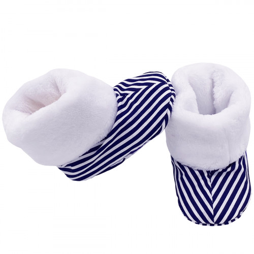 Ces bottons à rayures sont réalisés avec une douillette de couleur marine.