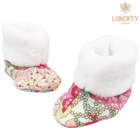 Voici des chaussons hauts Margaret Liberty of London qui réchaufferont avec originalité les petits petons de bébé ! Idéal pour un cadeau de naissance original.