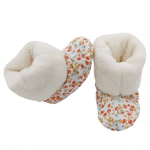 Ces chaussons hauts de naissance sont composés de deux types de tissus : un intérieur ultra doux et moelleux qui réchauffera les petits petons de bébé et un coté coton imprimé.