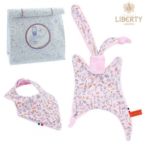 Ce coffret de naissance contient 1 Nin-Nin (doudou) livré dans un cube (boîte) tatoué, 1 Bavoir Bandana le tout livré dans 1 Lunch Bag accompagné d'1 Carte de Félicitation.