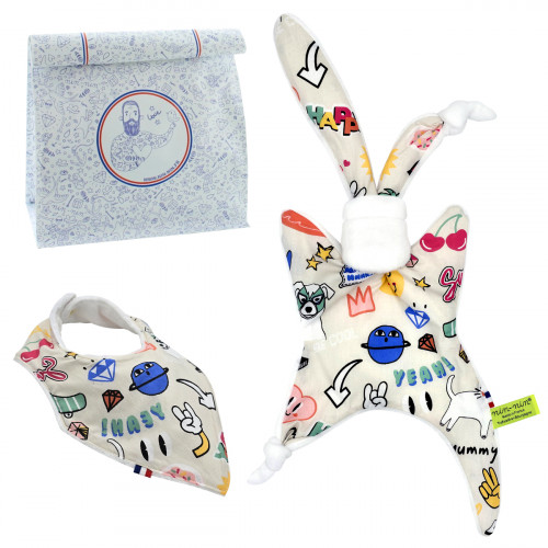 • Coffret de naissance doudou et plaid Namasté. Original et fabriqué en France. Doudou Nin-Nin