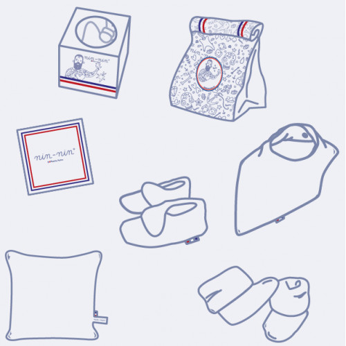 Ce coffret de naissance contient 1 Nin-Nin (doudou) livré dans un cube (boîte) tatoué, 1 Plaid accompagnés d'1 Carte de Félicitation.