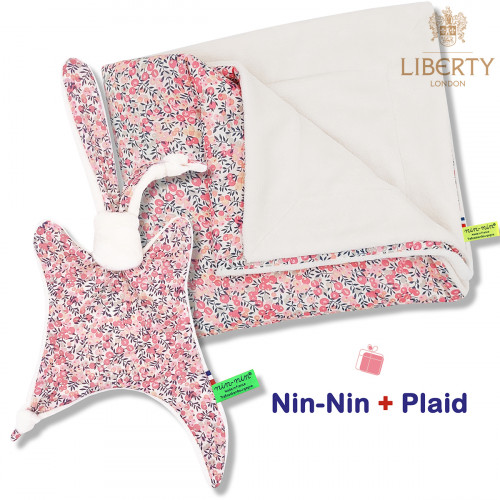 Ce coffret de naissance contient 1 Nin-Nin (doudou) livré dans un cube (boîte) tatoué, 1 Plaid accompagnés d'1 Carte de Félicitation.