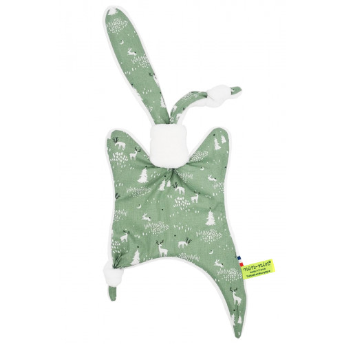 Ce doudou est composé de deux types de tissus : un côté ultra doux qui rassure et apaise et un coté coton imprimé. Ses extrémités très fines sont extrêmement faciles à prendre en main et à manipuler pour les toutes petites mains des nouveau-nés.