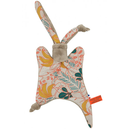 Ce doudou est composé de deux types de tissus : un côté ultra doux qui rassure et apaise et un coté coton imprimé. Ses extrémités très fines sont extrêmement faciles à prendre en main et à manipuler pour les toutes petites mains des nouveau-nés.