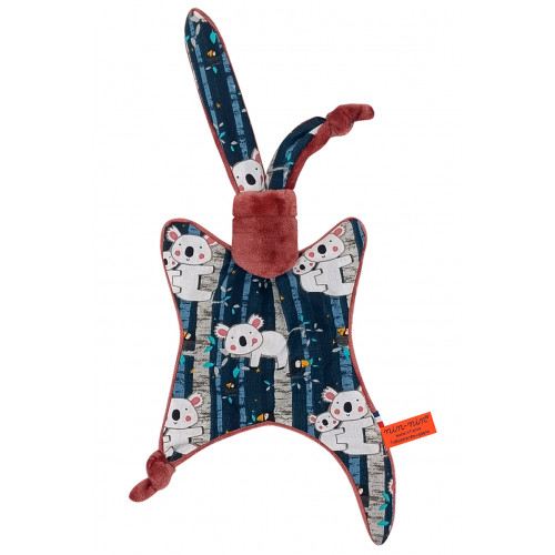 Ce doudou est composé de deux types de tissus : un côté ultra doux qui rassure et apaise et un coté coton imprimé. Ses extrémités très fines sont extrêmement faciles à prendre en main et à manipuler pour les toutes petites mains des nouveau-nés.