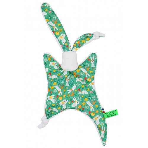 Ce doudou est composé de deux types de tissus : un côté ultra doux qui rassure et apaise et un coté coton imprimé. Ses extrémités très fines sont extrêmement faciles à prendre en main et à manipuler pour les toutes petites mains des nouveau-nés.