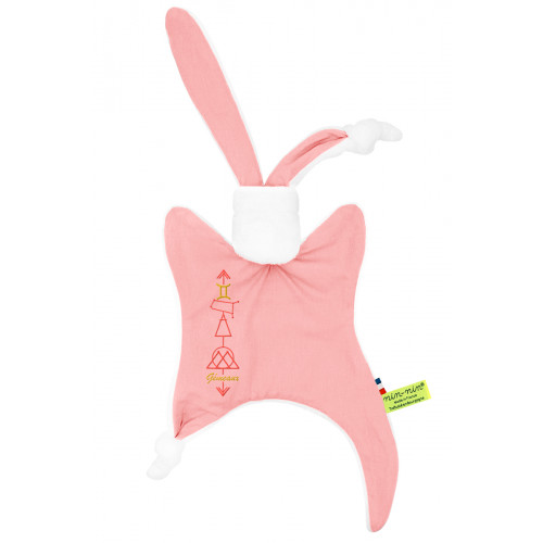 Ce doudou est composé de deux types de tissus : un côté ultra doux qui rassure et apaise et un coté coton imprimé. Ses extrémités très fines sont extrêmement faciles à prendre en main et à manipuler pour les toutes petites mains des nouveau-nés.