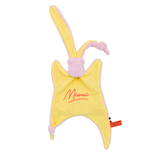 Ce doudou est composé de deux types de tissus : un côté ultra doux qui rassure et apaise et un coté coton imprimé. Ses extrémités très fines sont extrêmement faciles à prendre en main et à manipuler pour les toutes petites mains des nouveau-nés.