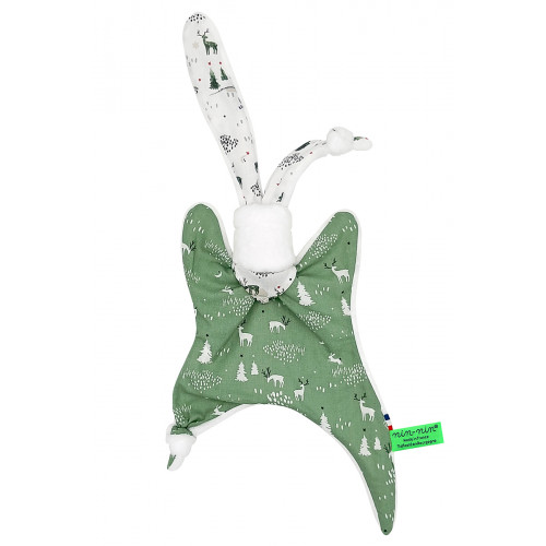 Ce doudou est composé de deux types de tissus : un côté ultra doux qui rassure et apaise et un coté coton imprimé. Ses extrémités très fines sont extrêmement faciles à prendre en main et à manipuler pour les toutes petites mains des nouveau-nés.