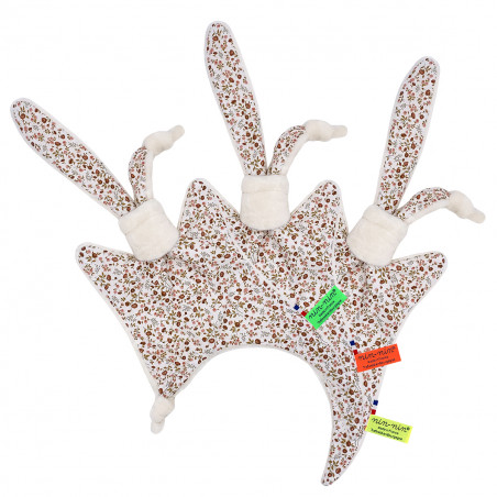 Ce doudou est composé de deux types de tissus : un côté ultra doux qui rassure et apaise et un coté coton imprimé. Ses extrémités très fines sont extrêmement faciles à prendre en main et à manipuler pour les toutes petites mains des nouveau-nés.