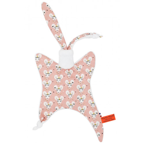 Ce doudou est composé de deux types de tissus : un côté ultra doux qui rassure et apaise et un coté coton imprimé. Ses extrémités très fines sont extrêmement faciles à prendre en main et à manipuler pour les toutes petites mains des nouveau-nés.