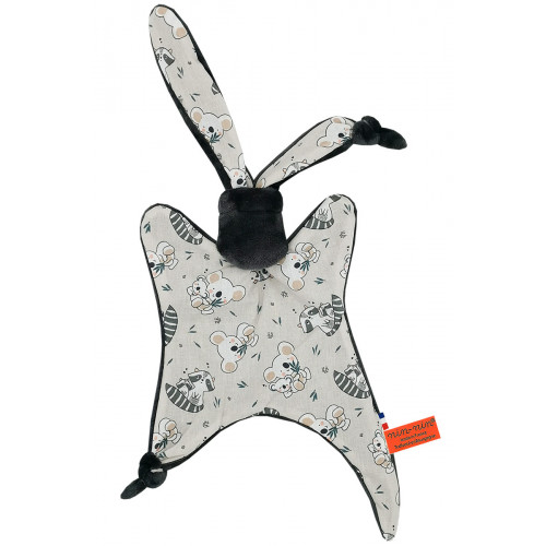 Ce doudou est composé de deux types de tissus : un côté ultra doux qui rassure et apaise et un coté coton imprimé. Ses extrémités très fines sont extrêmement faciles à prendre en main et à manipuler pour les toutes petites mains des nouveau-nés.