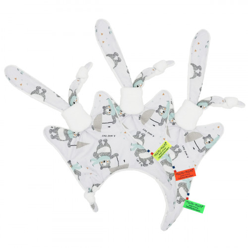 Ce doudou est composé de deux types de tissus : un côté ultra doux qui rassure et apaise et un coté coton imprimé. Ses extrémités très fines sont extrêmement faciles à prendre en main et à manipuler pour les toutes petites mains des nouveau-nés.