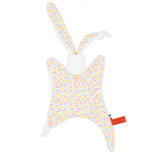 Ce doudou est composé de deux types de tissus : un côté ultra doux qui rassure et apaise et un coté coton imprimé. Ses extrémités très fines sont extrêmement faciles à prendre en main et à manipuler pour les toutes petites mains des nouveau-nés.