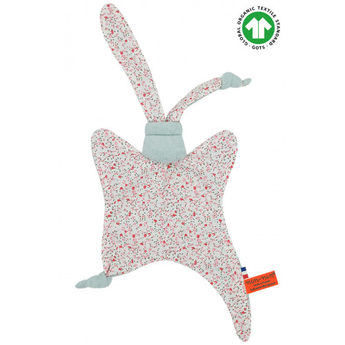 Ce doudou est composé de deux types de tissus : un côté ultra doux qui rassure et apaise et un coté coton imprimé. Ses extrémités très fines sont extrêmement faciles à prendre en main et à manipuler pour les toutes petites mains des nouveau-nés.