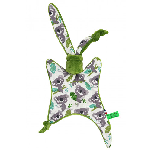 Ce doudou est composé de deux types de tissus : un côté ultra doux qui rassure et apaise et un coté coton imprimé. Ses extrémités très fines sont extrêmement faciles à prendre en main et à manipuler pour les toutes petites mains des nouveau-nés.