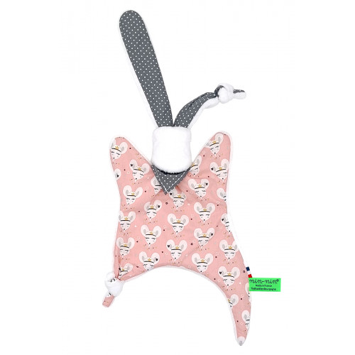 Ce doudou est composé de deux types de tissus : un côté ultra doux qui rassure et apaise et un coté coton imprimé. Ses extrémités très fines sont extrêmement faciles à prendre en main et à manipuler pour les toutes petites mains des nouveau-nés.