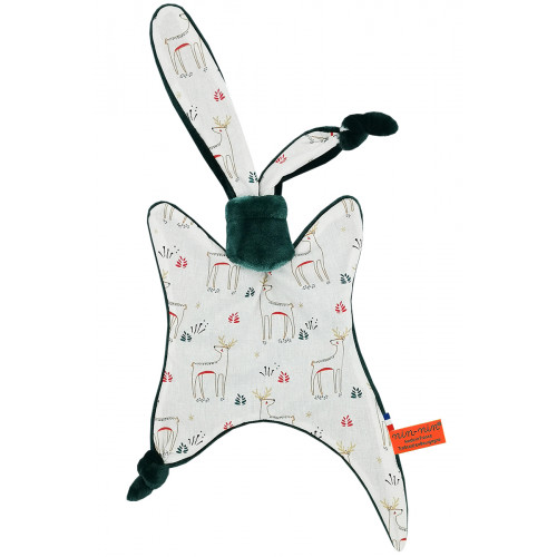 Ce doudou est composé de deux types de tissus : un côté ultra doux qui rassure et apaise et un coté coton imprimé. Ses extrémités très fines sont extrêmement faciles à prendre en main et à manipuler pour les toutes petites mains des nouveau-nés.