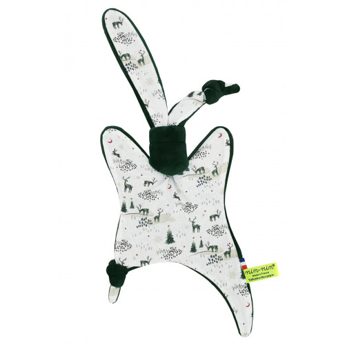 Ce doudou est composé de deux types de tissus : un côté ultra doux qui rassure et apaise et un coté coton imprimé. Ses extrémités très fines sont extrêmement faciles à prendre en main et à manipuler pour les toutes petites mains des nouveau-nés.
