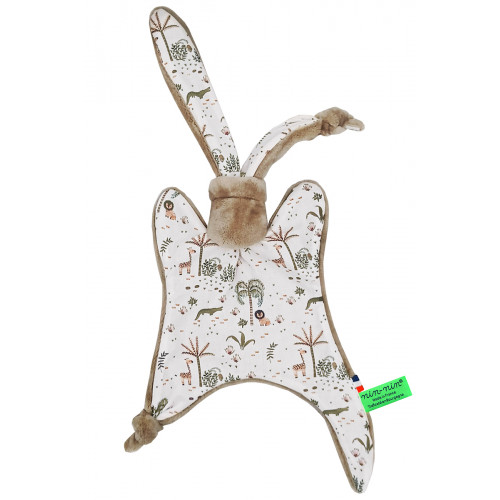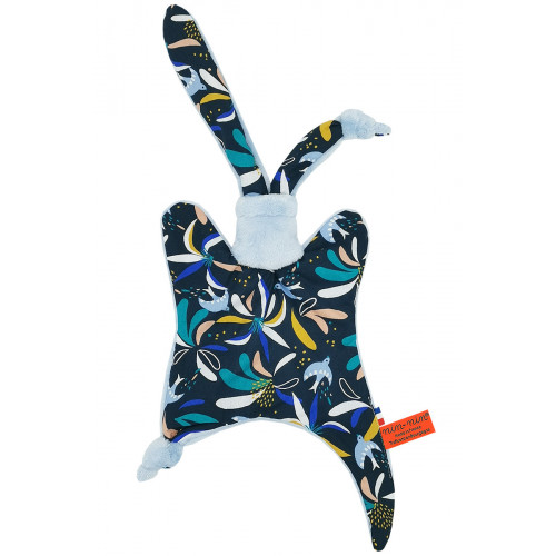Ce doudou est composé de deux types de tissus : un côté ultra doux qui rassure et apaise et un coté coton imprimé. Ses extrémités très fines sont extrêmement faciles à prendre en main et à manipuler pour les toutes petites mains des nouveau-nés.