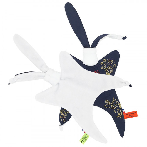 Ce doudou est composé de deux types de tissus : un côté ultra doux qui rassure et apaise et un coté coton imprimé. Ses extrémités très fines sont extrêmement faciles à prendre en main et à manipuler pour les toutes petites mains des nouveau-nés.