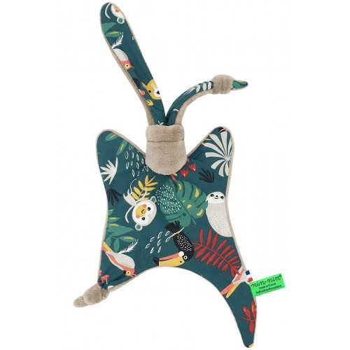 Ce doudou est composé de deux types de tissus : un côté ultra doux qui rassure et apaise et un coté coton imprimé. Ses extrémités très fines sont extrêmement faciles à prendre en main et à manipuler pour les toutes petites mains des nouveau-nés.