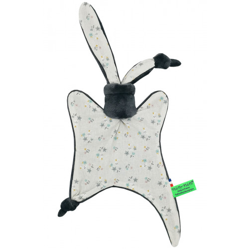Ce doudou est composé de deux types de tissus : un côté ultra doux qui rassure et apaise et un coté coton imprimé. Ses extrémités très fines sont extrêmement faciles à prendre en main et à manipuler pour les toutes petites mains des nouveau-nés.