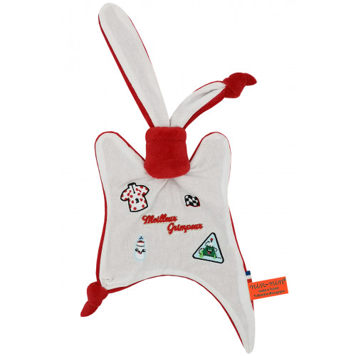 Ce doudou est composé de deux types de tissus : un côté ultra doux qui rassure et apaise et un coté coton imprimé. Ses extrémités très fines sont extrêmement faciles à prendre en main et à manipuler pour les toutes petites mains des nouveau-nés.