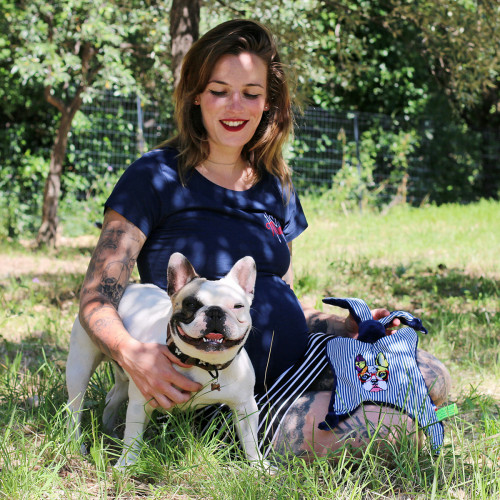 Le macaron bleu or rouge brodé en bas à droite nous rappelle que ce T-shirt est fabriqué en France avec beaucoup d'amour...
