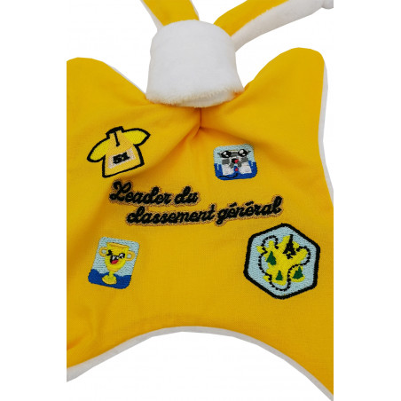 Fan de la grande boucle et roi de la pédale ? Nous avons pensé à toi ! Oui toi, qui chaque année te vautre dans le canapé, bidon et télécommande à la main, ou toi aussi qui teste toutes les étapes en avant première, tu seras ravi de découvrir nos 4 doudous personnalisés aux couleurs du Tour. Tu es à l'aise sur tous les profils, tu es une vraie moto sur les contre-la-montre, c'est ce doudou Le Leader qu'il te faut !