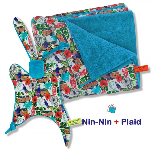Ce coffret de naissance contient 1 Nin-Nin (doudou) livré dans un cube (boîte) tatoué, 1 Bavoir Bandana le tout livré dans 1 Lunch Bag accompagné d'1 Carte de Félicitation.