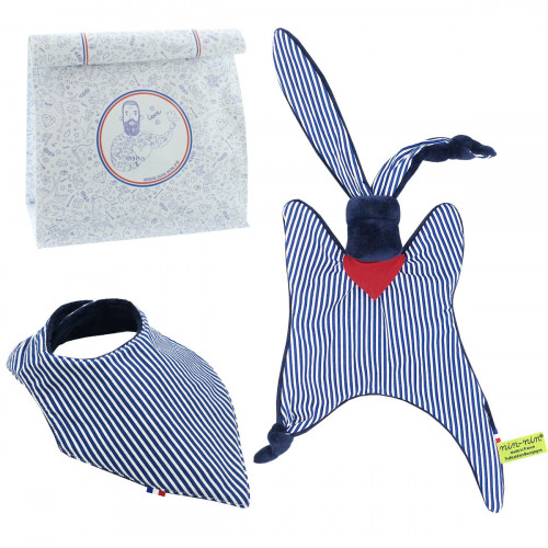 Alors ne cherchez plus, vous êtes au bon endroit. Livrés dans un joli lunch bag réutilisable, doudou Le Jude et bavoir Le Jude coordonnés feront la joie de maman, de papa, et de bébé évidemment.